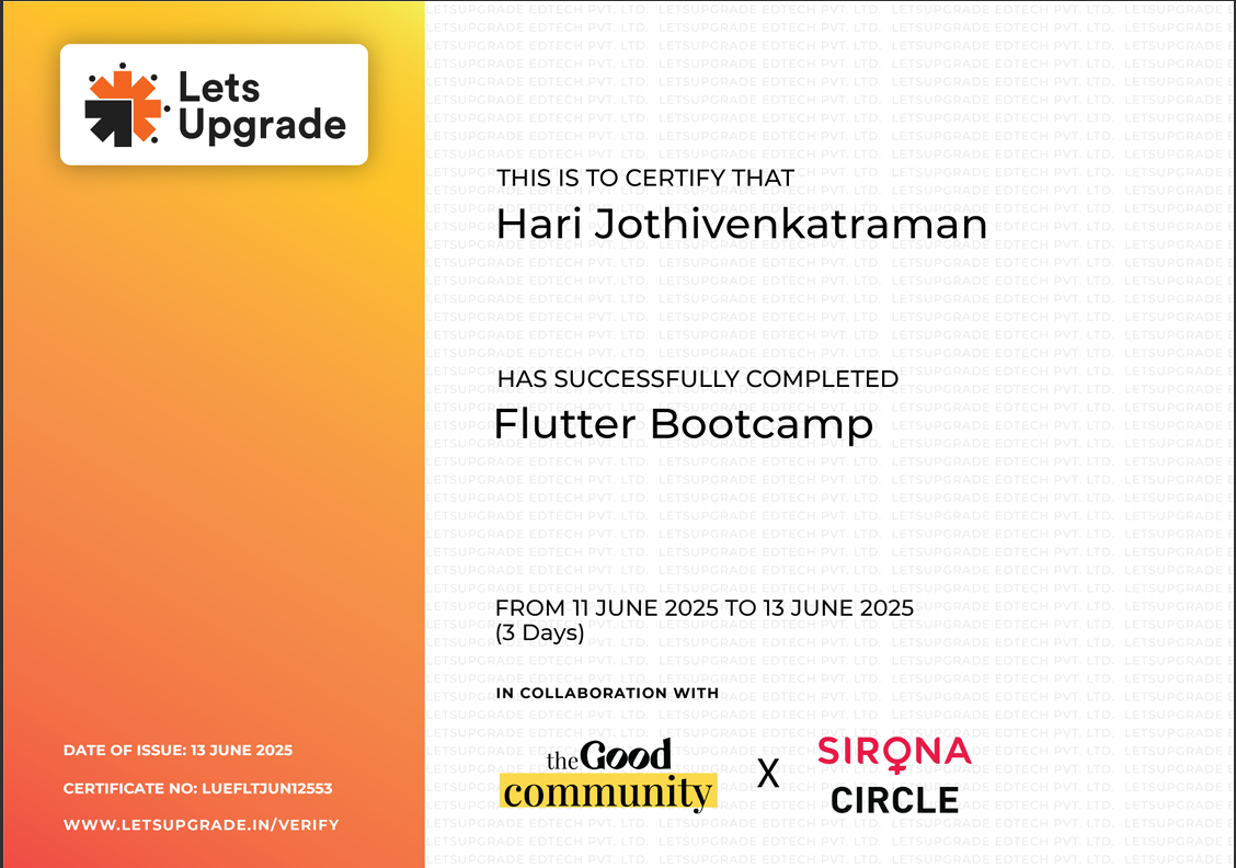 Completed an intensive bootcamp on Flutter app development.